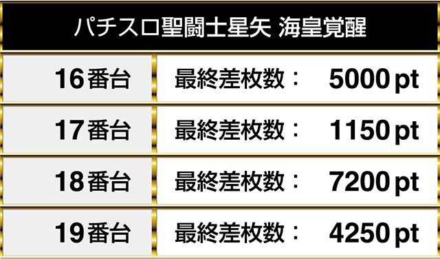 『パチスロ聖闘士星矢 海皇覚醒』の4台が並んで1000pt以上を記録し、そのうちの3台が4000ptオーバー!