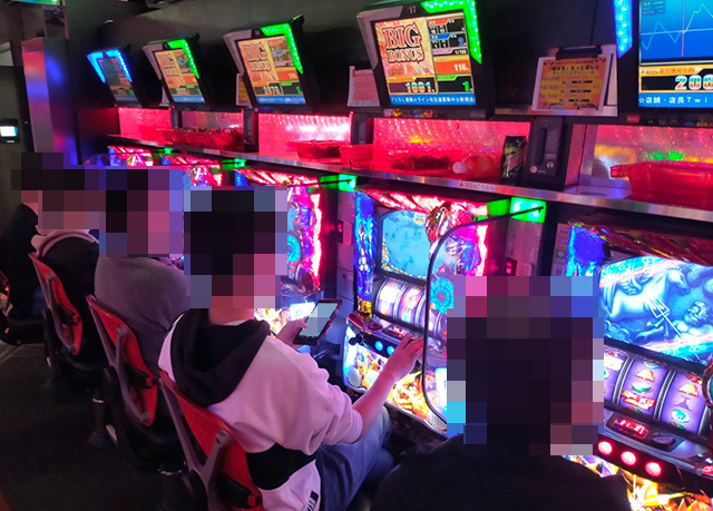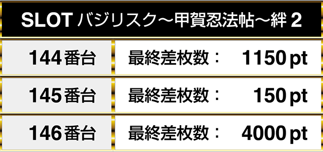 『SLOTバジリスク~甲賀忍法帖~絆2』は3台が連なってプラスptとなり、なかには4000ptの台もあった。