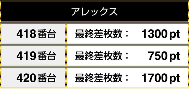 1日を通したデータをみると、4台中3台が連なってプラスptを記録!!