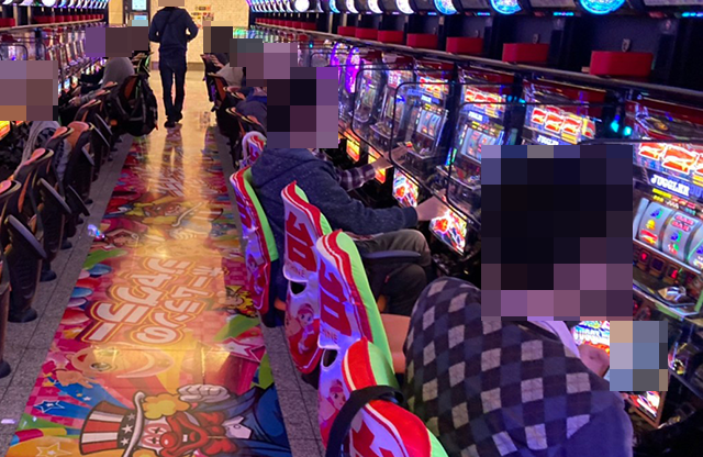 AT・ART機からボーナスタイプにいたるまでが幅広く支持されているパチスロコーナーで、「ファンキージャグラー2」のプレイヤーたちがとくに輝いてみえた。