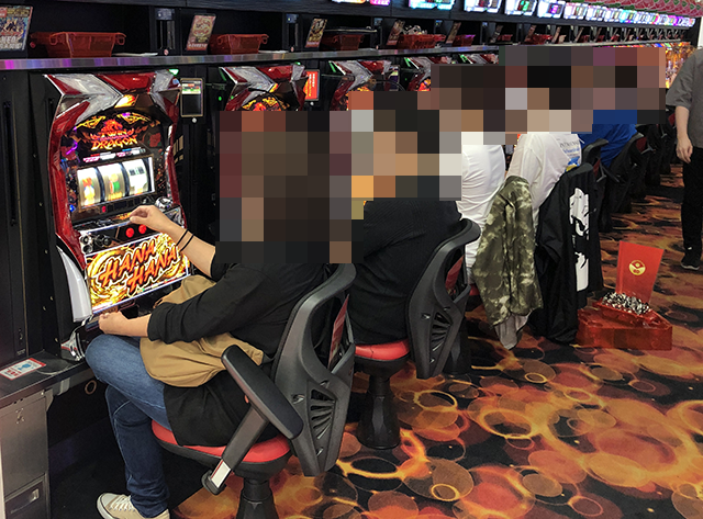 14時を過ぎた頃のパチスロで、とくに目立っていたのが「ツインドラゴンハナハナ-30」。