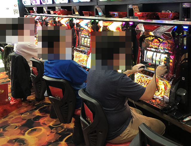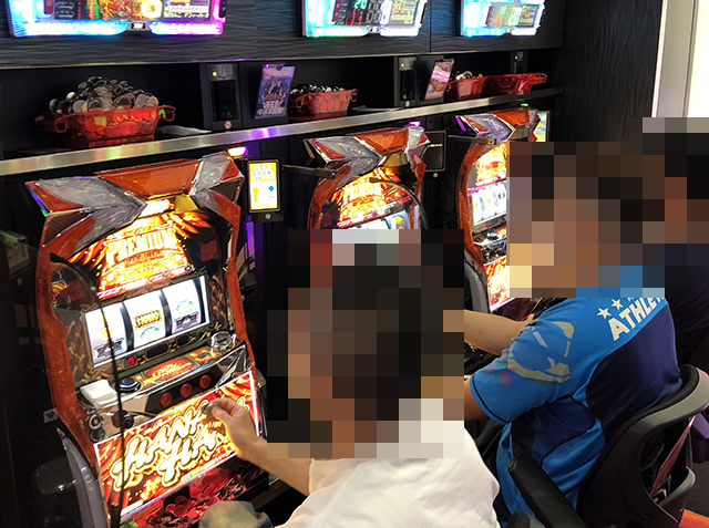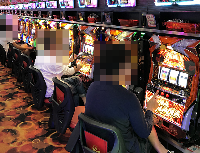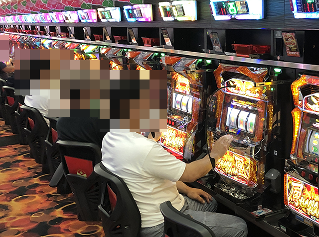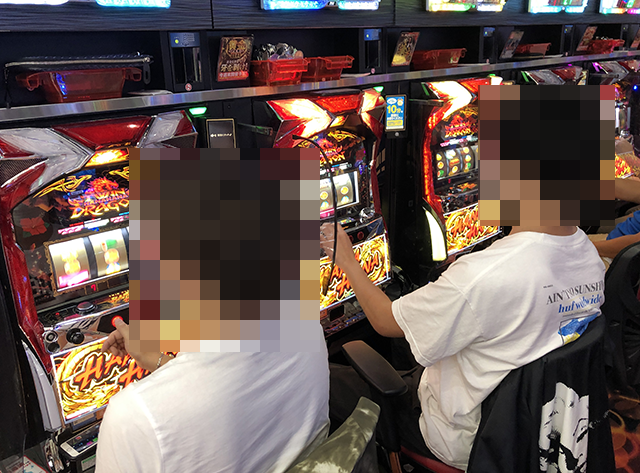3台が設置されている「ハナハナ鳳凰-30」でも、イキイキと遊技をおこなう姿を発見。