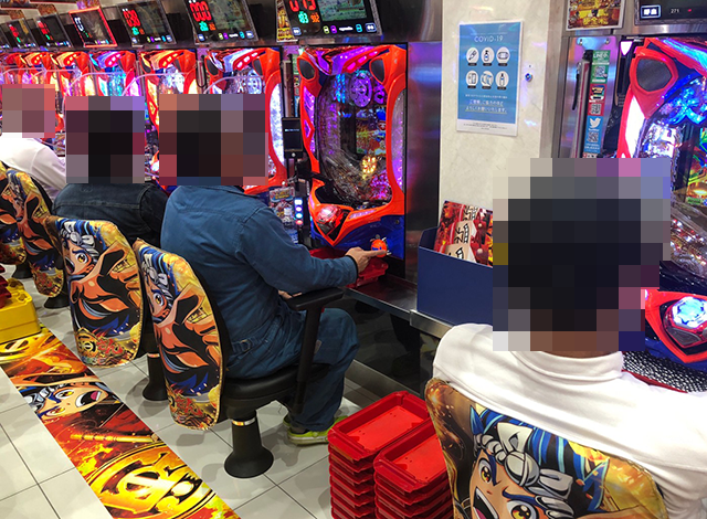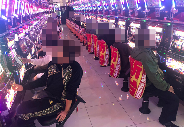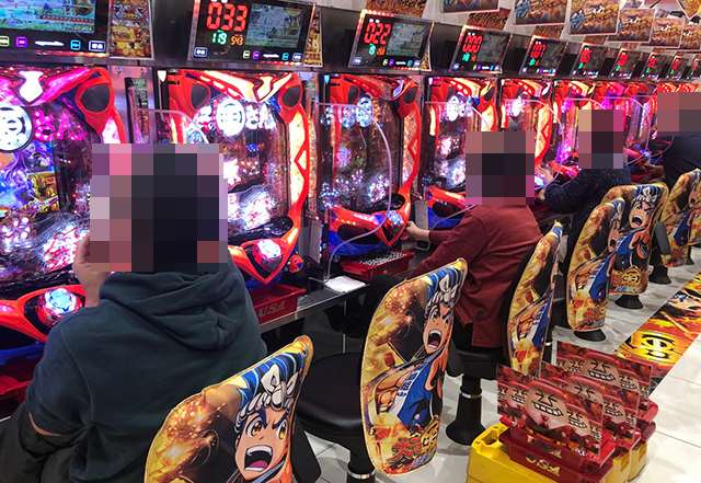 15時頃は14名のプレイヤーが遊技をおこなっており、最大で12箱の持ち玉を確認した。