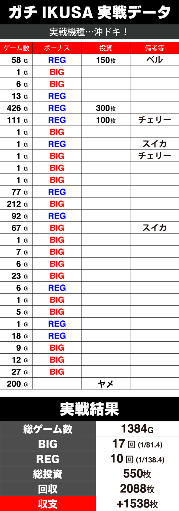 最初に獲得したボーナスのあとに2回ほど追加投資をしてしまったが、トータルの差枚は大きなプラス。