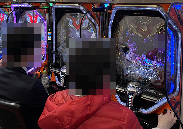 ホール内ではさまざまな年齢層のプレイヤーが遊技をおこなっており、どの台も楽しげなムード。うれしそうな姿からも、機種の魅力をあますところなく味わえていることがうかがえた。