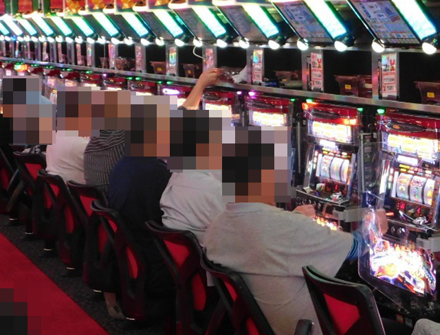 にぎわっているパチスロコーナーで、とくに目立っていたのは新台の『ファンキージャグラー2』!