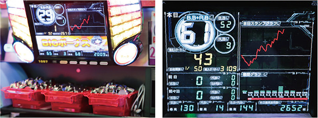 同じく京楽マシンが躍動的に大当りを生み出しており、京楽マシンコーナーのテンションの高さが写真越しに伝わってくる。