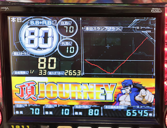 この日はパチスロの方が勢いづいていたものの、やはり主力たる京楽マシンが盛り上がりをリードしていた。