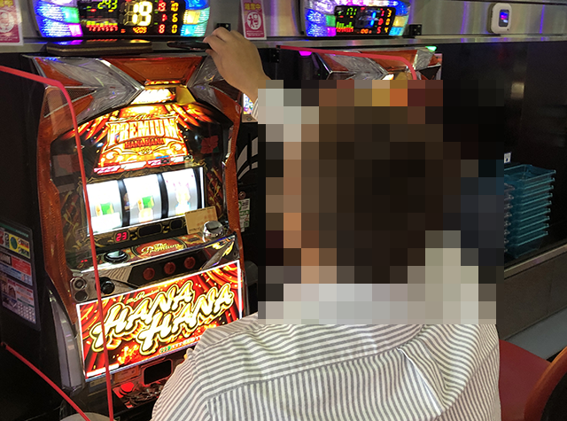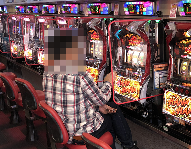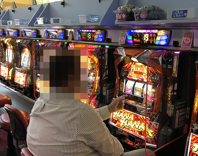 取材をはじめた頃に稼働している台はなかったが、ホール内をまわっているあいだに1名が着席し、イキイキとレバーを叩いていた。