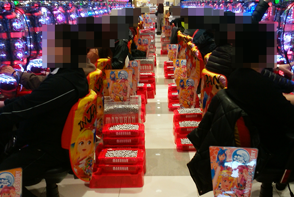 14時を過ぎる頃の4円パチンコでは、「CR牙狼 魔戒ノ花」や「CRルパン三世 I’m a Super hero」といったMAXタイプが活気づいており、大満足といった表情のプレイヤーも多い。