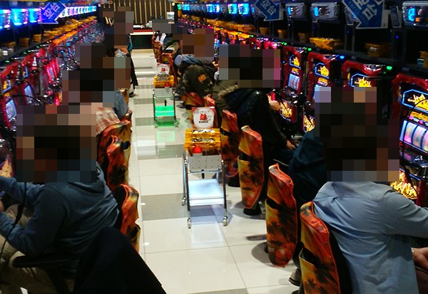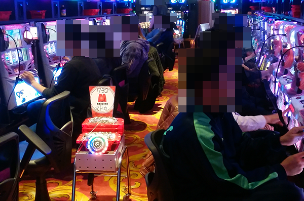 20円パチスロでも、「バジリスク~甲賀忍法帖~絆」や「沖ドキ!-30」、「アナザーゴッドハーデス」などには空き台がほとんどなく、早くからにぎわっていた。