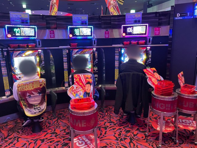 その他、店内ではドル箱後ろ積み&複数使用台が複数見受けられた。