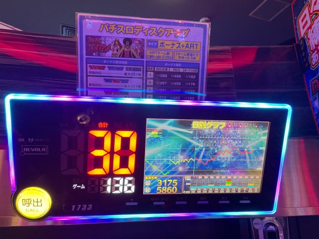 では、まずは当日のパチスロを機種ごとに結果を振り返っていこう。