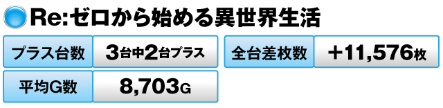 この日最も高い全台差枚数を叩き出したのが『Re:ゼロから始める異世界生活』だ。