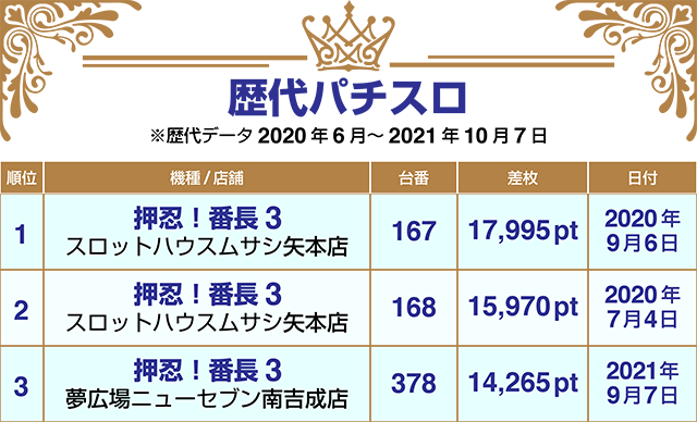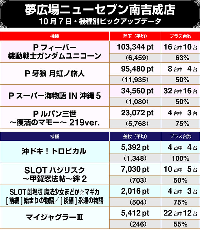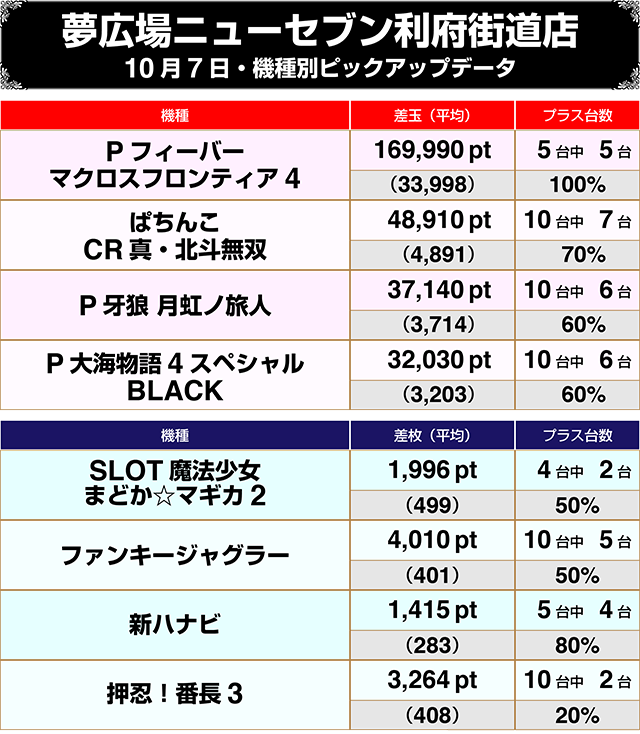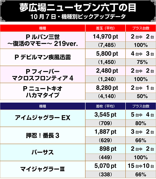 歴代、10月1日から7日までのランキングから、各店舗における10月7日の注目機種まで、まとめてお届け!