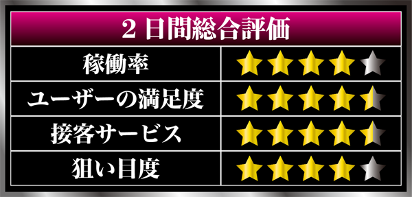 また、「ヱヴァンゲリヲン〜生命の鼓動〜」などでも活気のある雰囲気を感じられ、ジャグラーシリーズ以外のボーナスタイプにおいても、厚く支持されている理由を知ることができた。