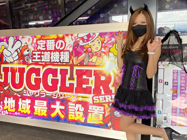 パチスロのシマをのぞいてみると、ジャグラーシリーズに多くのお客さまが集合!!