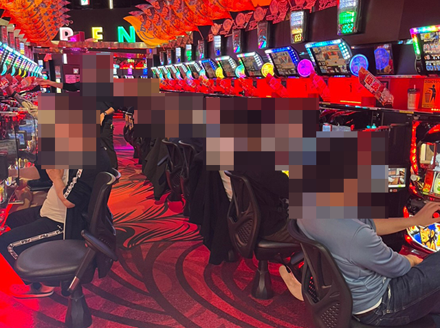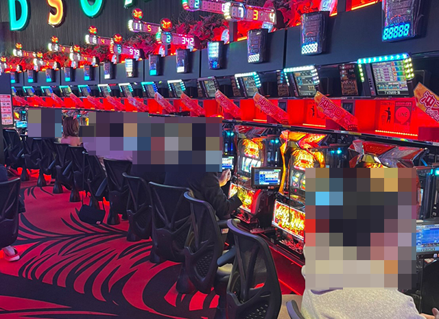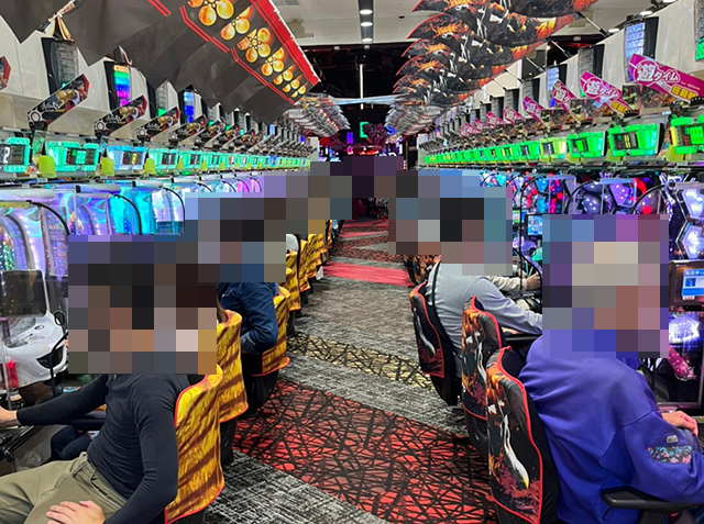 「プレミアムハナハナ-30」や「ツインドラゴンハナハナ-30」などにイキイキと遊技をおこなっている姿が並び、活気が感じられました。