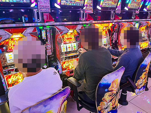 そのほか「プレミアムハナハナ-30」や「パチスロディスクアップ」では、活気あるシーンを至る所で目にしている。