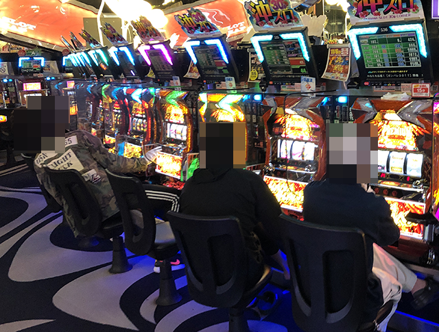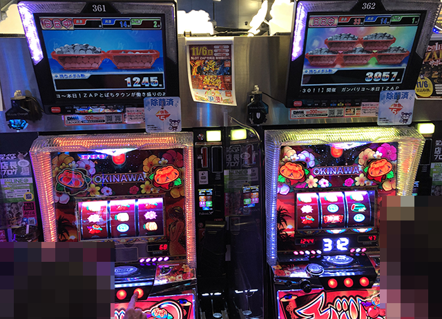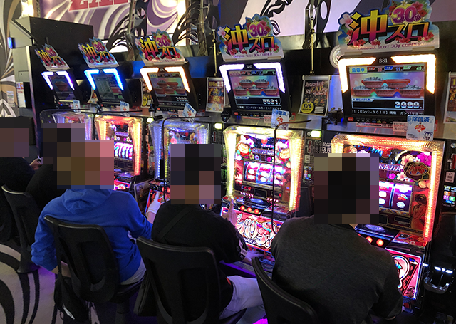 「チバリヨ-30」やハナハナシリーズなど、さまざまな沖スロが設置されているパチスロ専門店だ。