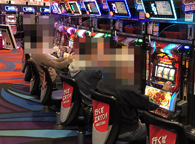 なかでも、「プレミアムハナハナ-30」で遊技をおこなっているプレイヤーの表情がひときわ明るい。