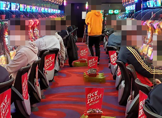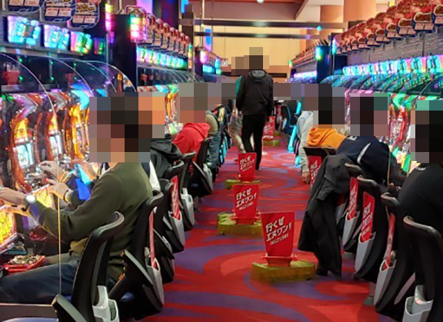 店内を進んでいくと、パチンコとパチスロの両方に遊技を満喫しているようなプレイヤーの姿があった。