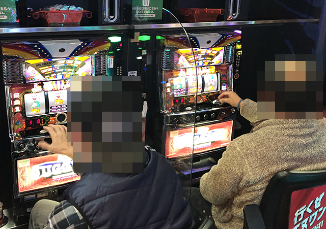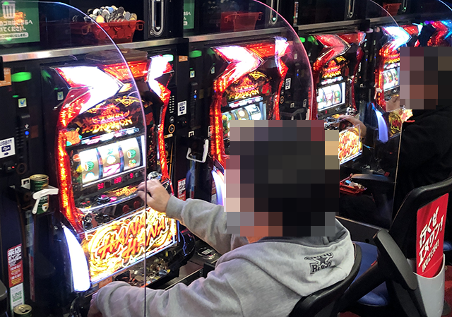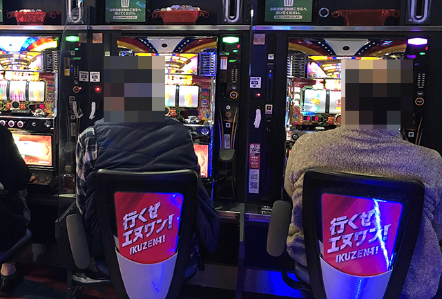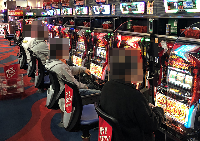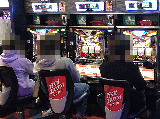 店内の状況をうかがうと、パチンコとパチスロの両方に鮮やかな光景が広がっていた。