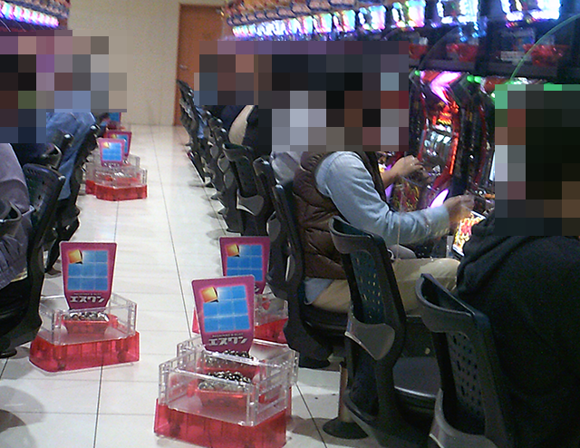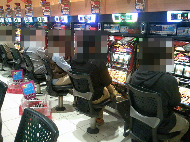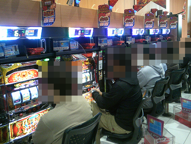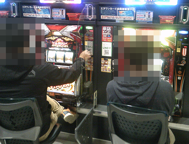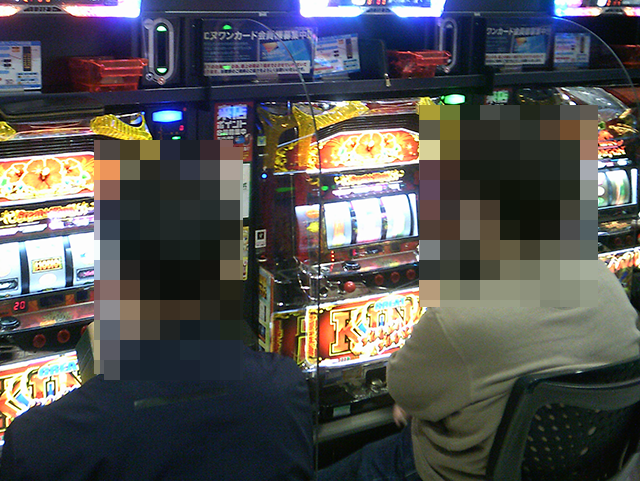ほかにも、「グレートキングハナハナ-30」や「ハナハナ鳳凰-30」で、楽しそうにレバーを叩いている姿を目にした。