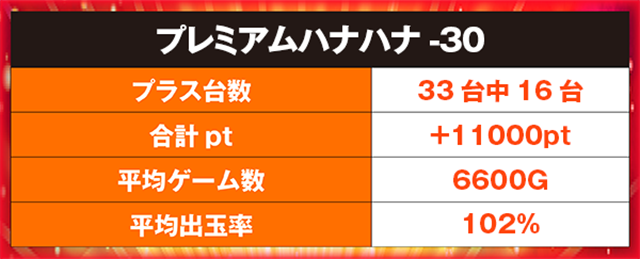 機種全体で+11000ptといった結果を記録。平均ゲーム数は6600Gであった。