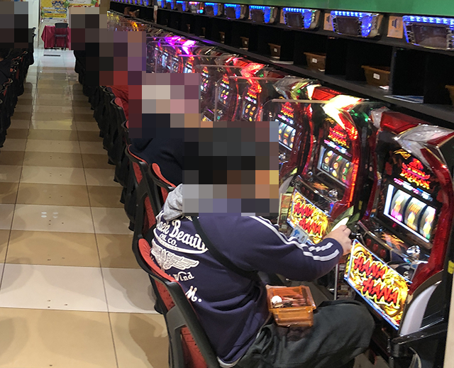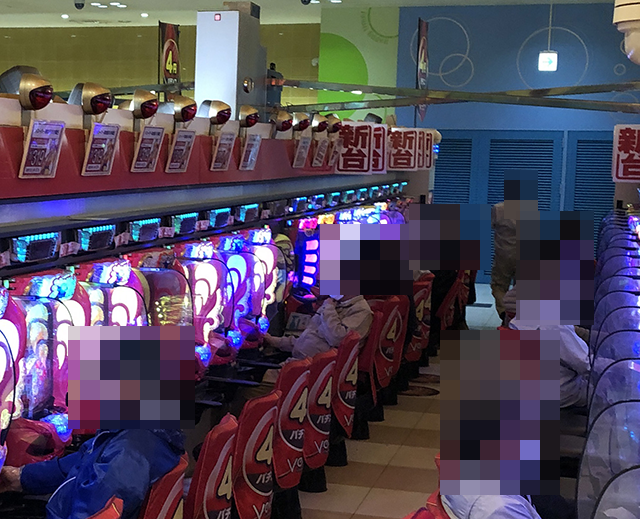 とくに、「Pスーパー海物語 IN 沖縄5 桜199ver.」などの海物語シリーズが盛況で、ホール全体でみても目立っていた。