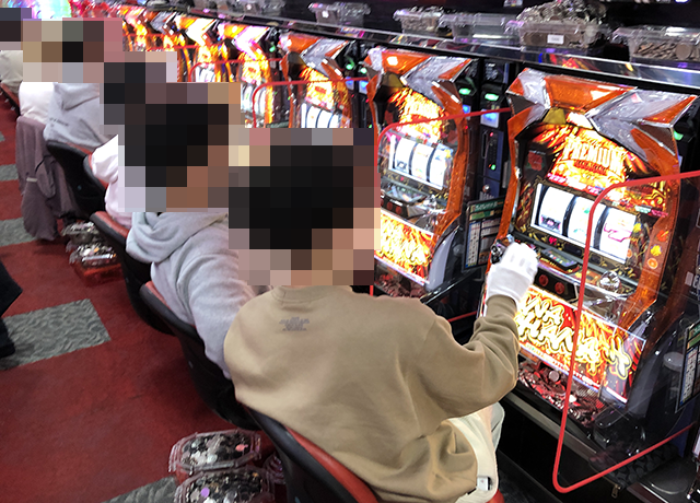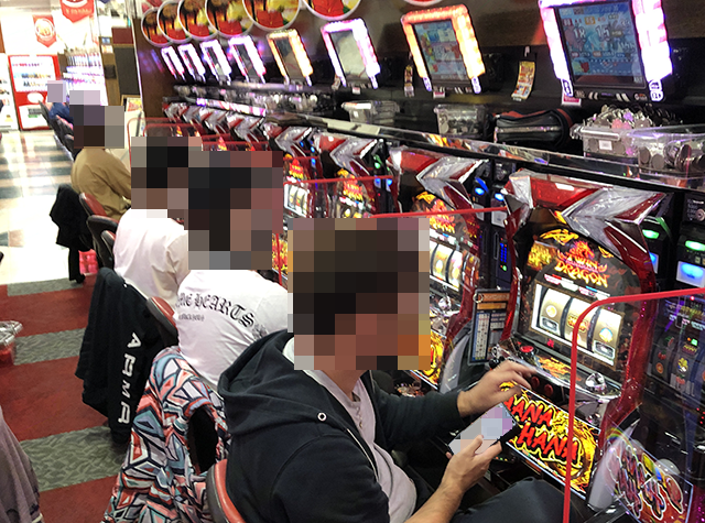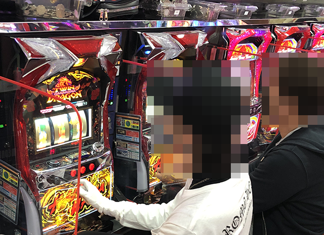 8台中4台が稼働していた『ツインドラゴンハナハナ-30』も盛況!
