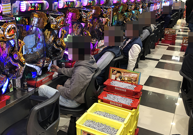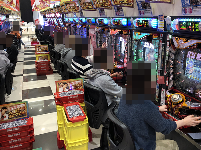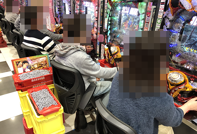 遊技を満喫しているような姿が多く、「マルハン東三条店」全体が盛り上がっていた。