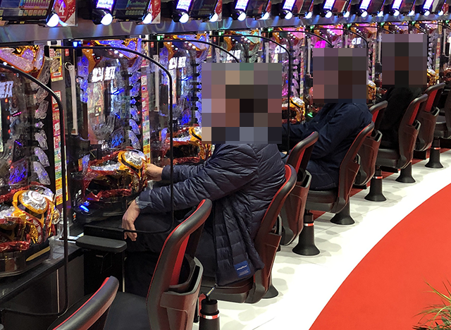 稼働率以上に盛況となっており、ひときわ楽しそうな光景が広がっていた「ぱちんこCR真・北斗無双」!