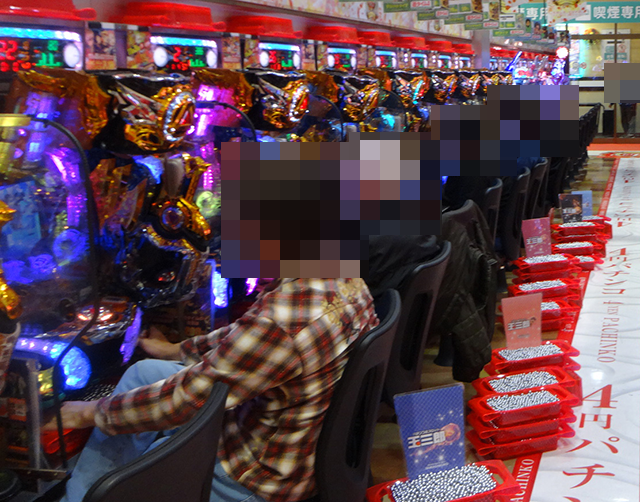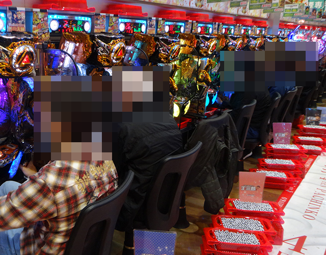 15時頃には9台中6台が稼働しており、すべてのプレイヤーが3箱以上の持ち玉で遊技をおこなっていた。