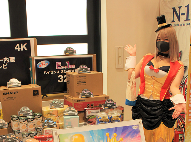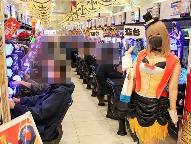パチンコの「Pスーパー海物語 IN 沖縄5」で多くのお客さまが活躍をしており、シマ内は華やかなムード!