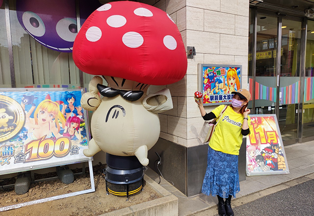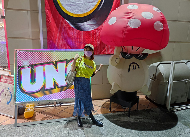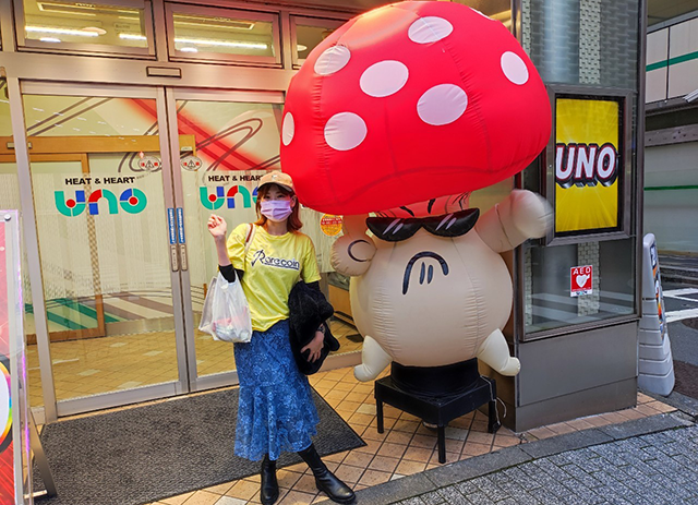 れあこいんのTシャツを着たナミちゃんが「稲毛海岸UNO」に到着!