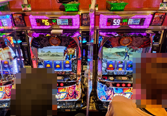 「パチスロ北斗の拳 宿命」にて、遊技を満喫しているといったプレイヤーを発見!