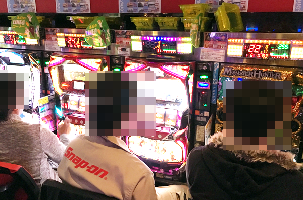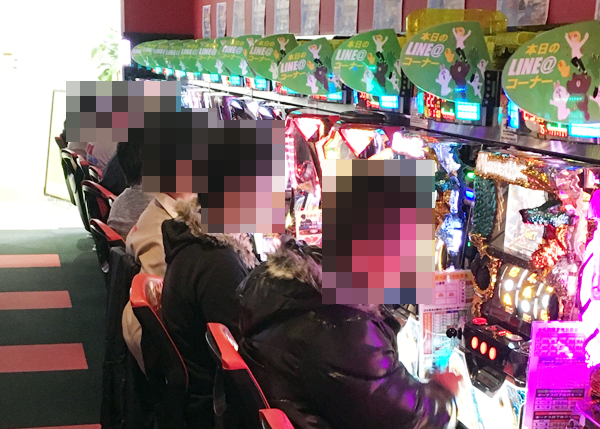 取材日は開店前からプレイヤーが集まるにぎやかな状況となっており、開店直後はパチスロコーナーが人気となっていた。