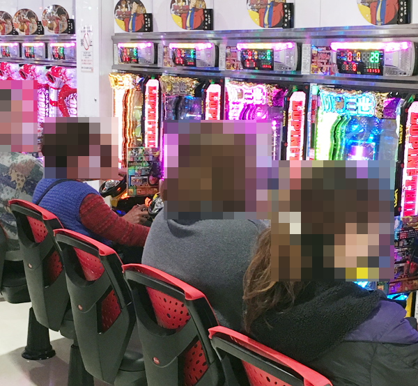 「パチスロ地獄少女」や「パチスロ ゴッドイーター」、「ハナビ」なども盛況で、シマ内には笑顔をみせるプレイヤーが多数。
