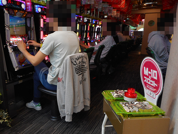 17時に近づいてきた頃、20円パチスロでもっとも盛り上がりをみせていたのが「ミリオンゴッド-神々の凱旋-」。朝から遊技を楽しんでいるといったプレイヤーもおり、機種が持つ魅力を存分に味わえているようであった。