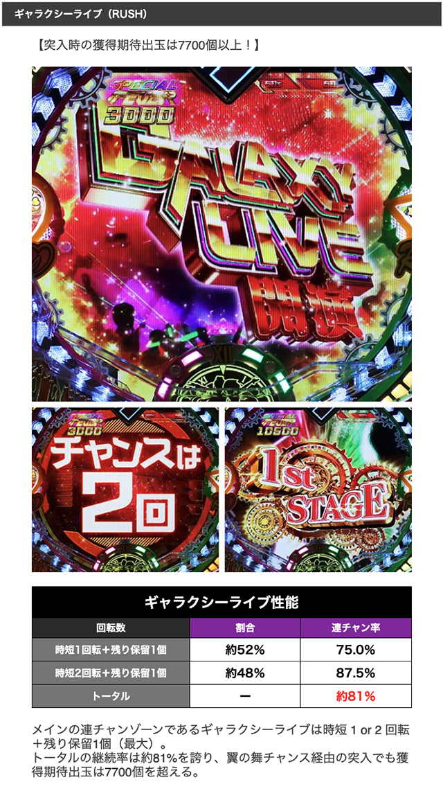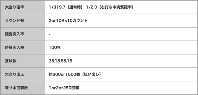 RUSHの継続率は約81%で、電チュー経由の大当り出玉はすべて約1500個だ。