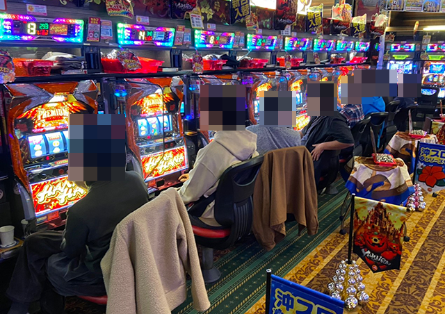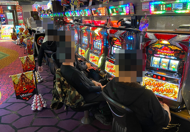 設置されている8台すべてが稼働していた『プレミアムハナハナ-30』が大盛況。