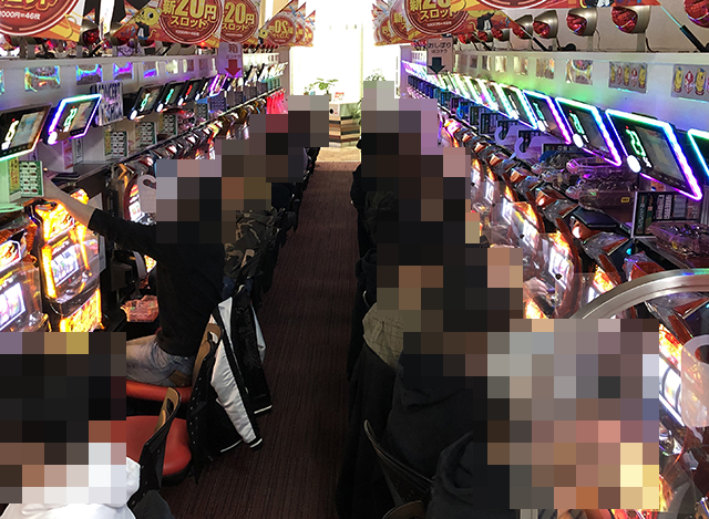 ハナハナシリーズをはじめ、6機種の沖スロが設置されているホールだ。