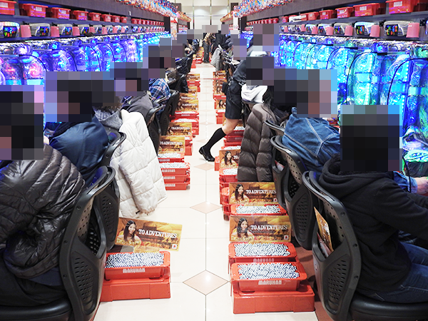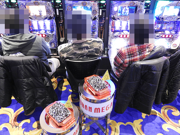 定番機種の「CR真・花の慶次」やバラエティコーナーも満席状態。空き台を探すプレイヤーがいるほどの人気となっており、とてもにぎやかな状況。ほかにも、「CRぱちんこ仮面ライダー フルスロットル」や「ぱちんこCR北斗の拳6 拳王」など、稼働の高い機種は多く、多数の機種において魅力的な光景をみられた。