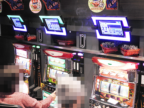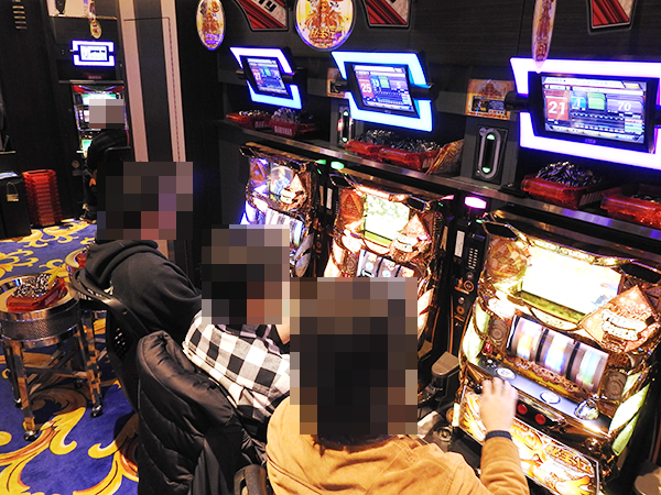20円パチスロでは「ミリオンゴッド-神々の凱旋-」や「パチスロ北斗の拳 強敵」といったATタイプが高稼働。笑顔を浮かべているプレイヤーも多く、きらびやかな光景が広がっていた。