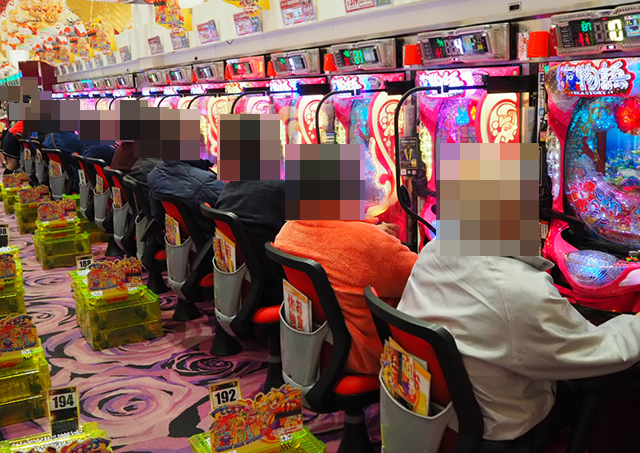 にぎわっている場所がたくさんあるなかで、とくに印象的であったのが「Pスーパー海物語 IN 沖縄5」だ。