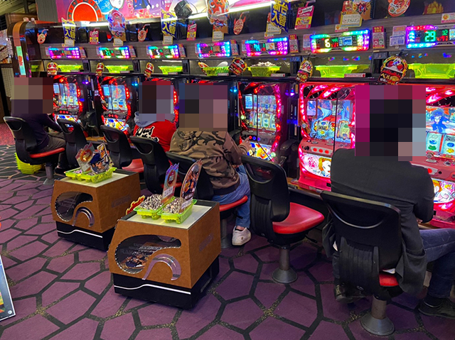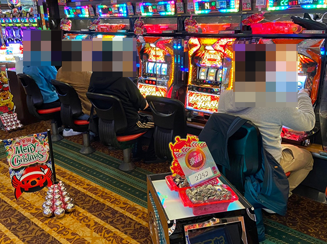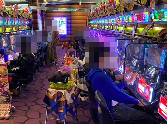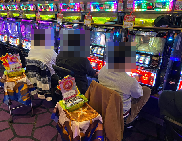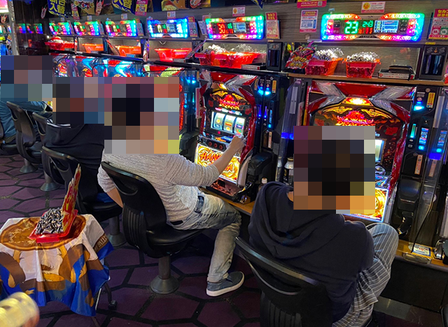 「ツインドラゴンハナハナ-30」と「プレミアムハナハナ-30」の両方に、笑みを浮かべて遊技をおこなっている姿があり、それぞれが充実した時間を過ごしているようにみえた。