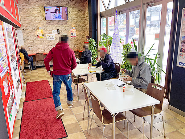 同店にはレストスペースが完備されており、テレビを見ながらのんびりと休息をとることができる。