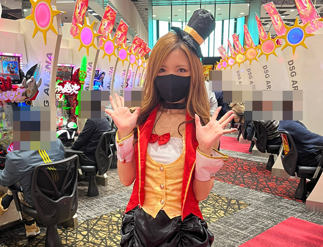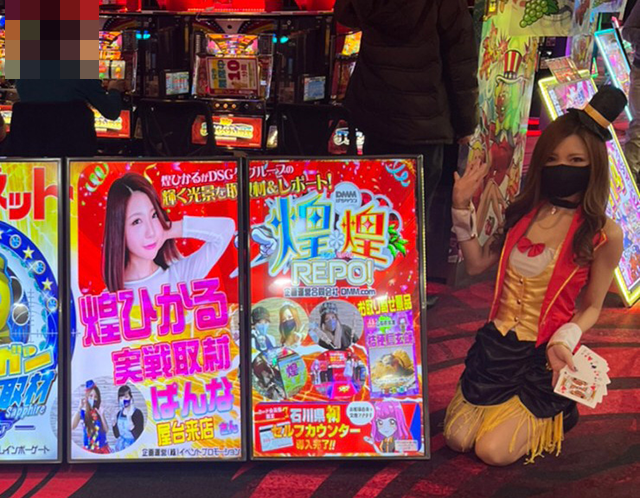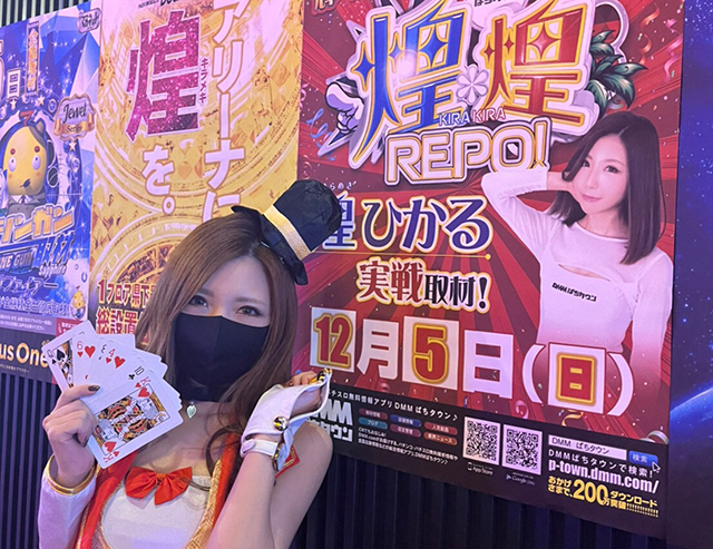 遊技の観戦だけではなく、「アイムジャグラーEX」で実戦もおこなったひかるちゃん♪