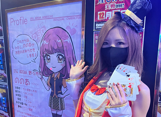 店内をまわっていると、ホールのオリジナルキャラクターの「ののあちゃん」の紹介ポスターをはっけん!!